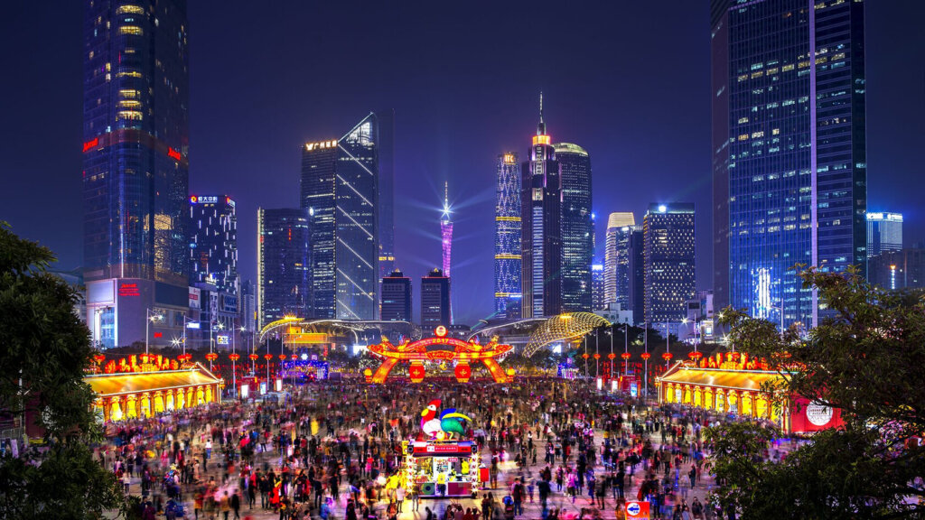 Гуанчжоу, один из крупнейших и наиболее процветающих городов Китая, представляет собой современное чудо с впечатляющими небоскребами, передовой архитектурой и оживленной городской жизнью. На его горизонте доминируют изящные небоскребы, в том числе Кантонская башня, с которой открывается захватывающий панорамный вид на город. Международный финансовый центр Гуанчжоу (IFC) и Финансовый центр CTF — другие архитектурные чудеса, придающие городу современный облик.