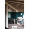 Каркас — еловая фанера; в сиденье блок стальных пружин + ППУ разной плотности с акриловой подкладкой. Подушки сиденья — гусиный пух с ППУ-вставкой. Только мягкие кожи; кант может быть в тон или контрастный.