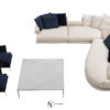 B&B Italia Noonu. Система Читтерио (2021), продолжение Atoll: визуально «парящая» база, глубокое одно большое сиденье и наклонная спинка под свободные подушки.