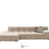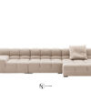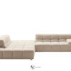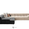Система начинается с пуфа-куба и дополняется центральными, угловыми и терминальными блоками (с низким/высоким подлокотником) — от прямых до островных композиций на 360°.