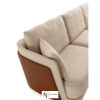 Диван имеет глубокое сиденье и мягкие подушки для спины, что обеспечивает комфортное положение и поддержку спины. Ножки дивана изготовлены из дерева и имеют изящный дизайн, который дополняет общую эстетику мебели.