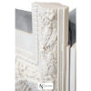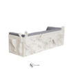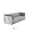 Диван, выполненный в виде деревянной конструкции и панелей в ручной скульптуре, изготовленных из смолы и отделанных с помощью техники реставрации, напоминающей камень. Обивочная ткань состоит из шести бархатистых и съемных подушек. Ножки изготовлены в акриловых витках.