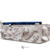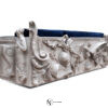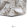 Диван, выполненный в виде деревянной конструкции и панелей в ручной скульптуре, изготовленных из смолы и отделанных с помощью техники реставрации, напоминающей камень. Обивочная ткань состоит из шести бархатистых и съемных подушек. Ножки изготовлены в акриловых витках.