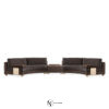 Каркас — дерево на ремнях; чехлы съёмные. Опции: стёжка Astuccio и столик вместо подлокотника — мрамор Calacatta/Portoro/Verde Alpi/Rosso Lepanto или шпон Macassar/Rosewood со встроенным латунным логотипом.