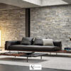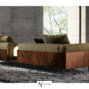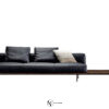 Архитектурный деревянный каркас из ореха или палисандра сочетается с объёмными мягкими подушками, создавая баланс строгости и уюта. Коллекция включает два варианта длины, модули с подлокотниками, кресло и оттоманку.