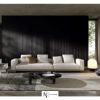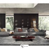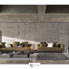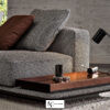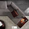 Как точка препинания, модуль вставляется между сиденьями, дополненный топом, прикрепленным к основанию дивана: он не прерывает плавности формы, добавляя многофункциональный топ из темно-коричневого ореха с тонировкой Canaletto, лакированного ясеня Liquorice, мрамора Calacatta и Grigio Orobico или сглаженного матового Nero Marquina и матового гранита Belvedere.