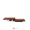 Последний выполнен в полной эстетической преемственности с системой сидений Horizonte, от которой он заимствует как детали металлического основания, покрытого черным матовым лаком, так и толщину столешницы: горизонтальный паз, выгравированный на бычьем крае массива дерева, напоминает о той же концепции геометрии, которая использована в основании.