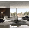 Элементы выделены тонкими металлическими или деревянными ножками в бронзе, полированном металле или тонированном ясене, адаптированными по форме конструкции.