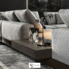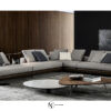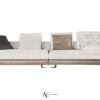 Основание дивана может быть обито тканью, кожей или седельной шкурой, на которые укладываются спинки сидений, подушки и подносы, создавая завораживающее взаимодействие форм и чередование положительных и отрицательных пространств. Диван стоит на литых алюминиевых ножках цвета олова — эксклюзивная разработка студии Minotti, которые установлены под углом 45° к углам дивана, что придает изюминку даже крупногабаритным композициям. Чтобы сделать диван White еще более гостеприимным, в набивку подушек был добавлен более глубокий слой гусиного пуха, что делает их роскошно мягкими и создает приятный контраст с элегантной формальностью основания дивана.