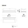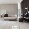 Ножки – глянцевый или черный хром. В качестве внешней отделки фабрика предлагает использовать ткань или кожу различных цветов из собственного ассортимента (чехлы съемные). Модель может быть дополнена маленькими декоративными подушками квадратной формы, с наполнителем из полиэфирного волокна и в хлопковых чехлах.