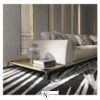 Основание дивана украшено декоративными элементами из металла с золотым покрытием, что добавляет ему изысканности и шарма.
