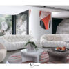 Диван имеет уникальный дизайн, который создает впечатление плавающих подушек и заставляет его выглядеть как пузырьковый облако. Каркас дивана выполнен из металла, что придает ему прочность и стабильность. Диван имеет мягкие подушки для сидения и спинки, обитые высококачественной кожей или тканью.