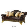 Theodore Alexander Italian — красивое красное дерево и мягкое кресло для двоих, волнистые мягкие перила над мягкой спинкой и мягкое сиденье между прокручиваемыми подлокотниками, поручень сиденья с позолоченным узором, окружающий кожаный фриз, покрытый медными мечами, на ножках из тонкой литой латуни.