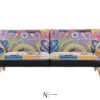 Rhapsody — «оркестровка» тактильных материалов и кутюрных деталей: жаккард + кожа, ремни на подлокотниках, фирменная надпись Versace, двойной кант с жаккардовой вставкой и латунные опоры Medusa в золотой отделке.