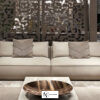 Каркас выполнен из массива дерева и еловой фанеры, подвес сидений из эластичных ремней. Набивка из полиуретана дифференцированной плотности. Обивка из кожи или ткани. На внешней стороне подлокотников и спинке есть вставки из сатинированной нержавеющей стали, для которых доступны различные варианты отделки, и окантовка из кожи. Сиденья состоят из подушек на полиуретановой основе, Memory Foam® и перьев; подушки спинки набиваются полиуретаном и перьями. Квадратный пуф с внутренней основой из массива дерева и еловой фанеры, с набивкой из полиуретана дифференцированной плотности. Обивка из кожи или ткани. Декоративные вставки из кожи или ткани. Также доступен следующий вариант: фризы на боковых сторонах из сатинированного алюминия и внутренняя пластина из сатинированной нержавеющей стали, внешняя рама доступна в различных вариантах металлической отделки.