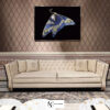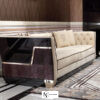 Внешний корпус из фигурной изогнутой фанеры тополя в частичной отделке шпоном (корневая часть дерева-эбеновое дерево — платан) или с лакированной отделкой (цвета RAL) в сочетании с кожаной или тканевой обивкой и вставкой из полированной нержавеющей стали. Основание из лакированного МДФ (цвета RAL) дополнено угловыми элементами из полированной нержавеющей стали, скрепленными эластичными лентами. Подушки сидений из полиуретана двойной плотности, Memory Foam® и гусиного пуха; спинка и боковины с отделкой капитоне или стеганые. Обивка из кожи или ткани, профили и углы могут быть с лакировкой под золото, бронзу или черный никель.