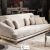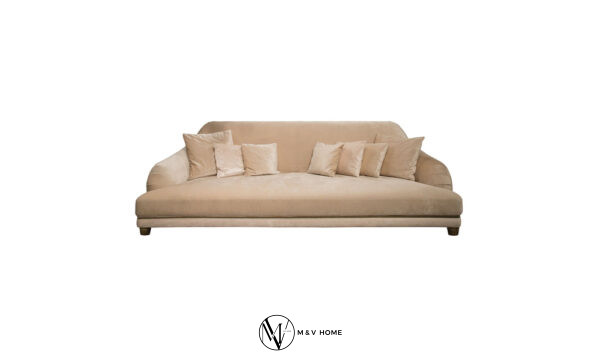 Каркас из фанеры и массива дерева, подвес из эластичных ремней. Набивка из пенополиуретана дифференцированной плотности и Memory Foam®. Сиденье обтянуто тканью или кожей внутри и снаружи. Ножки из литого алюминия с отделкой «крокодиловая кожа». Основание и кромка спинки украшены молниями из латуни и кожаными ползунками с логотипом. Диван укомплектован подушками со следующими размерами: 45х45 см и 55х55 см. Ножки можно отделать любым лаком из ассортиментов лака для металла.