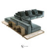 Диван с обивкой из кожи или ткани, каркас из дерева с эластичными пружинными ремнями. Спинка и подлокотники из полиэстера с набивкой из пера. Подушки сидений набиты пенополиуретаном дифференцированной плотности, Memory Foam® и перьями, пришитыми к внешней обивке; незакрепленные подушки с перьевой подкладкой. Диван снабжен внешней структурой из фанеры с обивкой из ткани (Gand, Faber или Vermeer) со стеганым декором canneté. Цилиндрические металлические ножки с рельефным логотипом Visionnaire. Диван предлагается с увеличенной глубиной за счет удлинения заднего основания, которое может вместить небольшие столики из мрамора с кожаной окантовкой и/или небольшие кожаные отделения для книг со стеклянными полками. Модульная версия включает в себя центральные, угловые и боковые элементы. Металлические детали могут быть покрыты хромом, золотом, шампанским, сиеной, серым или черным никелевым покрытием.