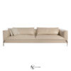 Диван с несъемной обивкой из кожи или ткани; каркас из фанеры и массива дерева с эластичными ремнями; набивка из полиуретана дифференцированной плотности, Memory Foam ® и перьев. Незакрепленные подушки из перьев. Ножки в форме ласточкиного хвоста выполнены из нержавеющей стали. Для металлических деталей доступны различные варианты отделки.