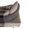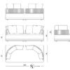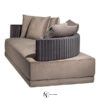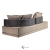 Диван с обивкой из кожи или ткани, основание состоит из деревянной рамы с эластичными пружинными ремнями. Подушка сиденья из пенополиуретана дифференцированной плотности, Memory Foam®. Спинка из дерева с обивкой из ткани Gand, Faber или Vermeer со стеганым декором canneté. Незакрепленные подушки из пера. Базовый профиль из алюминия доступен с отделкой из полированного хрома, полированного золота или сатинированного черного никеля.