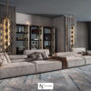 Диван в обивке из кожи или ткани, деревянный каркас оснащен эластичными ремнями для упругости сиденья; основание из дерева в матовой лакированной отделке. Спинка из массива дерева и фанеры с наполнением из полиуретана дифференцированной плотности. Подголовник с внутренним металлическим каркасом; наполнение из полиэфира и акрилового волокна; ручная регуляция уровня наклона. Подушки сиденья и подлокотников с наполнением из полиуретана, Memory Foam® и пуха. Нижний профиль из нержавеющей стали. Возможен вариант в кожаном исполнении с необработанным краем (рекомендуется использовать толстую кожу). В тканевом варианте декоративные вставки предлагаются в тканях Faber, Gand, Kale и Eco-Skin или Soft leather; металлические детали доступны в различных вариантах матовой отделки.