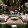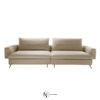 Диван из кожи или ткани, каркас из фанеры и массива дерева. Каркас сиденья с подвесом из эластичных ремней. Изогнутые подлокотники и спинка. Набивка внешней конструкции и подушек сидений выполнена из полиуретана дифференцированной плотности и акрилового волокна. Подушки спинки и небольшие подушки набиты перьями. Трубчатые опорные элементы, которые прикреплены к задней части подушек спинки, наполнены пенополиуретаном. Обивка задней части спинки может быть выполнена из кожи или ткани со стеганым декором canneté или из кожи с набивным переплетенным рисунком. Окантовка из контрастной кожи. Логотип Visionnaire из хромированной латуни на левом подлокотнике. Ножки и нижний профиль из алюминия. Металлические детали доступны с золотой или хромированной лакированной отделкой. Касательно упаковки для дивана большого размера, диван в разобранном виде делится на 2 упаковки с 4-мя ножками в каждой из них. Маленькие подушки для спинки доступны в контрастных оттенках.