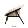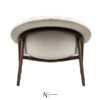 Мягкий изгиб корпуса, образующий подлокотник и вмещающий мягкую подушку для спины, подчеркивает чистую и обволакивающую линию деревянных ножек. Обивка из ткани, ножки из массива орехового дерева с матовой отделкой.