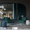 Кресло Baxter Bruxelles создано дизайнером Paola Navone. Оно опирается на каркас из металлической трубы, обтянутый натуральной или антрацитовой кожей. Крупные подушки сиденья и спинки сделаны из пенополиуретана различной плотности. Внутри кресло усилено пружинящими ткаными эластичными ремням из резины. Внутренняя конструкция из фанеры тополя. Кожаная обивка с аккуратной отстрочкой по краям.