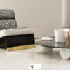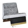 Кресло с абстрактным принтом Greta Special Edition Printed изготовлено итальянской фабрикой Baxter по задумке дизайнеров Draga & Aurel. Отличительная особенность модели – наклонная подставка из шпона, на которую установлено мягкая спинка и сиденье. Для наполнения подушек кресла без подлокотников используется пенополиуретан.