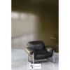 Каркас кресла выполнен в фигурной трубчатой форме из полированного металла с хромированной отделкой. Мягкие, покатые подушки сиденья и спинки, а также широкие подлокотники, набиты формованным пенополиуретаном для максимального комфорта. Внешняя отделка кресла выполнена из натуральной кожи, доступной в различных вариантах цветовой гаммы из собственного ассортимента фабрики.