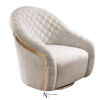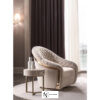 Металлическое поворотное основание оснащено системой возврата в исходное положение. Декоративная лента из золота или бронзы подчеркивает его изгибы. Обивка и стежка полностью выполнены вручную из ткани, бархата, кожи или из ткани/кожи. Элегантное кресло с извилистой формой и обхватывающей спинкой, обеспечивающей полный комфорт.