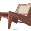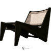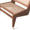 Фигурное основание в виде двух, соединенных между собой, ножек в виде молний изготовлено из массива дерева и плавно переходит в наклоненную спинку с изящным плетением. Глубокое и вместительное сиденье также плетеное, что создает интересный визуальный контраст с массивом деревянного каркаса.