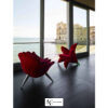 Основа кресла изготовлена из полированной стали, а обивка выполнена из мягкой и приятной на ощупь ткани. Форма кресла напоминает лепесток цветка, который обхватывает тело человека, обеспечивая максимально возможный комфорт.