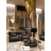 Основание из массива древесины и фанеры, подвес сидений из эластичных ремней. Подвесной корпус и мягкие подушки сиденья с фиксированным чехлом с обивкой из кожи или ткани. Высокая спинка и подлокотники бержер. Наполнитель из полиуретана дифференцированной плотности, Memory Foam® и пера. Подушки спинки набиваются пером. Основание отделано сатинированной нержавеющей сталью. Также доступны пуфы с каркасом из массива дерева и фанеры с набивкой из полиуретана дифференцированной плотности. Обивка из кожи или ткани. Для металлических деталей доступны различные варианты отделки.