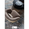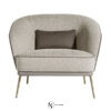 Кресло из кожи или ткани с двухцветной обивкой. Каркас и спинка из фанеры и массива дерева. Подвес сиденья из эластичных ремней. Спинка и подлокотники имеют изогнутую форму. В качестве наполнителя для кресла и подушки используется полиуретан дифференцированной плотности, каркас сиденья из дерева с глянцевым полиэфирным покрытием по шкале оттенков RAL/NCS. Ножки и нижняя рама из конической нержавеющей стали, они доступны с отделкой из сатинированного металла. Сиденье и спинка отделаны контрастной кожей. Небольшая подушка для спинки отличается контрастной обивкой.