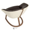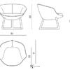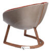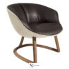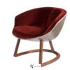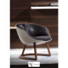 Маленькое мягкое кресло. Внешняя структура из смолы с кожаной обивкой. Сиденье разделено на три части, набивка из полиуретана разной плотности, обивка из ткани. Каркас из массива ореха Canaletto с натуральным покрытием, подчеркивающим текстуру древесины, и фигурным трехлепестковым сечением, частично встроенным в спинку.