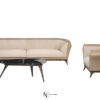 Кресло в обивке из кожи или ткани. Каркас изогнутой формы из массива и многослойной фанеры. Наружное покрытие из твердого полиуретана изогнуто-вогнутой формы. Внутренняя часть подлокотников и спинки объемной формы; наполнение из полиуретана дифференцированной степени плотности и акрилового волокна; эластичные ремни обеспечивают упругость сиденья. Несущая структура из массива ясеня в матовой отделке.