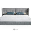 Кровать Angel Cerda 7030 — массивное изголовье для выделения личного пространства. Двуспальная кровать изготовлена с внутренней конструкцией из массива натурального соснового дерева, что обеспечивает длительную эксплуатацию и надежность. Набивка из синтетического материала – пенополиуретана плотностью 25 кг/м3. Сверху – прочный текстиль серого цвета. Это 100% полиэстер, который обладает высокой износостойкостью, не вызывает аллергии. Ножки изготовлены из металла и окрашены в черный цвет методом порошкового покрытия. На каждой есть накладка, которая защищает напольное покрытие от повреждений. Каркас оснащен планками, которые обеспечивают амортизацию и удобство.