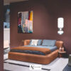 Изголовье слегка изогнуто, создавая эффект объятия и визуальной лёгкости. Каркас из древесины и металлических элементов обтянут кожей высшего качества, обработанной вручную. Наполнение из пенополиуретана разной плотности обеспечивает комфорт.