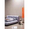 Платформенный, низкий силуэт визуально расширяет пространство; ножки утоплены, за счёт чего кровать будто «парит». Обивка — кожа ручной выделки с аккуратными швами; цельная отделка подчёркивает статус и долговечность модели.