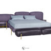 Изголовье выполнено в виде цельной панели с мягкой обивкой из кожи, декоративные швы добавляют фактуру. Каркас из дерева и металла обеспечивает прочность, а эластичные ремни поддерживают матрас.