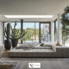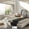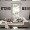 Двуспальная кровать с мягким изголовьем, без изножья, кровать полностью обита тканью с мягким наполнением. Наполнение — полиуретан. Благодаря обивке со всех сторон, Squaring может идеально разместиться в центре комнаты.