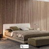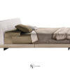 Платформа и изголовье доступны в разных конфигурациях: от минималистичной плоской панели до обволакивающего мягкого варианта. Каркас приподнят над полом, ножки утоплены, что создаёт эффект парения.