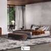Кровать Spencer сочетает плавные, текучие формы и эргономичный дизайн. Цельный каркас полностью обтянут тканью или кожей, создавая ощущение цельности и мягкости.