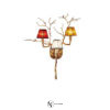 Бра выполнено в металлическом корпусе, с лампами в виде свечей под тремя абажурами из разноцветного текстиля, заложенного мягкой складкой. Подойдет для декорирования и освещения самых разных помещений: гостиных, спален, столовых, холлов.