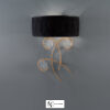 На золоченом металлическом основании асимметрично подвешены 3 медальона из стекла необычной структуры. Венчает светильник большой, мягко драпированный абажур из плотного черного текстиля с бархатным эффектом.