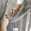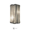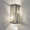 Оригинальная модель выполнена из металла с никелевым покрытием. Основание — прочное, оснащенное надежной системой крепления. Главное достоинство светильника — своеобразный абажур, сформированный тончайшими цепями. Они плавно провисают на каркасе, создавая иллюзию живых волн и обеспечивая дополнительное рассеивание света.