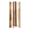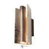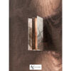 Настенный светильник из цельного мрамора призматической формы с основанием в виде буквы «V». Ножка-рассеиватель из нержавеющей стали с рассеяным светодиодным источником света мощностью 10 Вт и двумя точечными светильниками GU10 max 5OW. Несущая конструкция из металлического профиля круглого сечения с низковольтной проводкой и источником питания, размещенным в кронштейне для настенного монтажа. Цельный мрамор доступен в цветах Invisible grey, Elegant Dune и Emperador Light. Вес 18 кг.