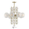 Люстра Calypso с плафонами из матового стекла с узором, имитирующим трещины на льду. Каркас декорирован стержнями с небольшими узорчатыми шариками из прозрачного стекла. Благодаря изящному дизайну эта люстра станет центром притяжения вашего интерьера.