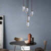 Красивая комбинация с 5 светильниками, расположенными каскадом на разном уровне на общем потолочном диске — когда стекло и свет не могут друг без друга!